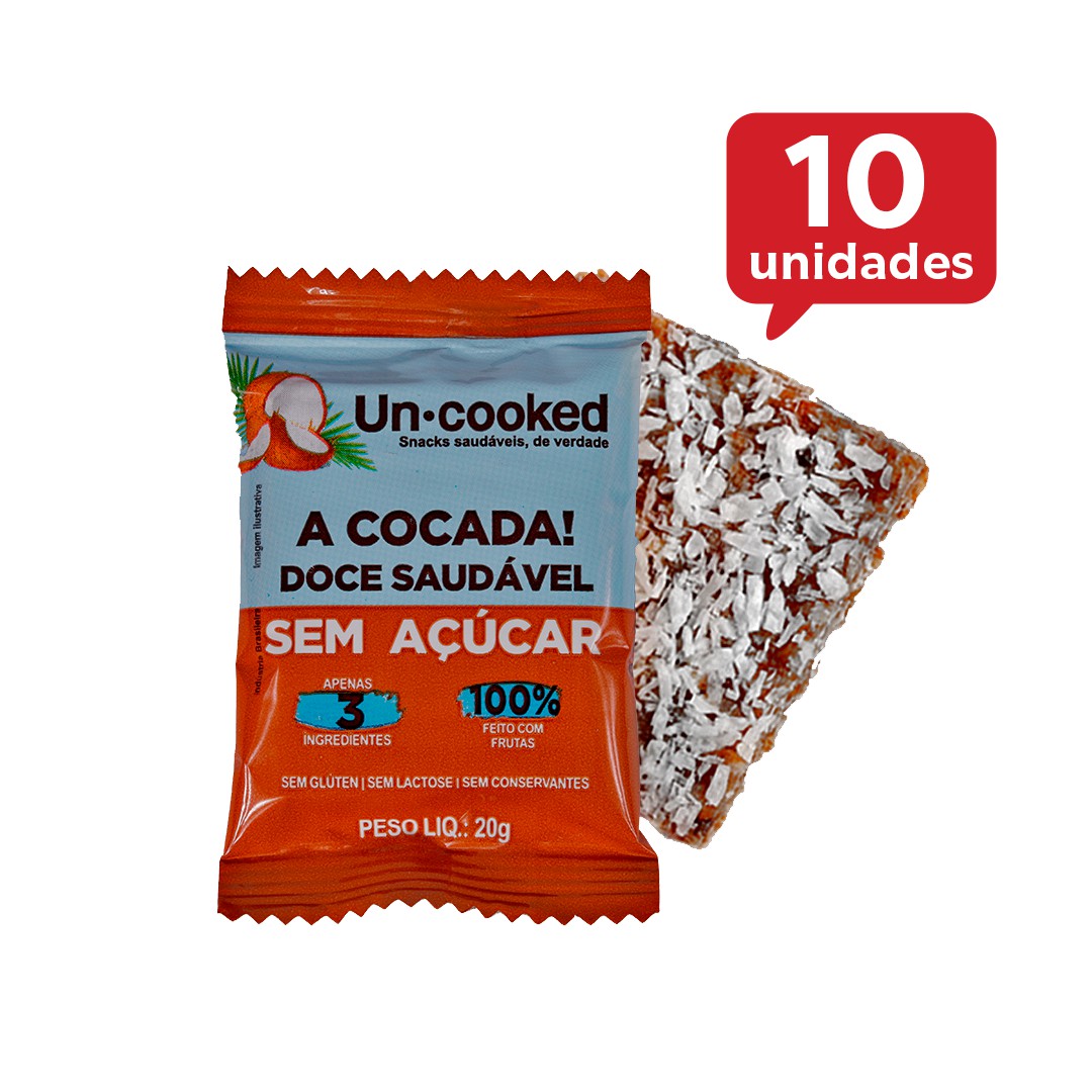 A cocada Natural da Uncooked é feita com apenas três ingredientes: coco seco desidratado, tâmara e leite de coco vegano em pó.
